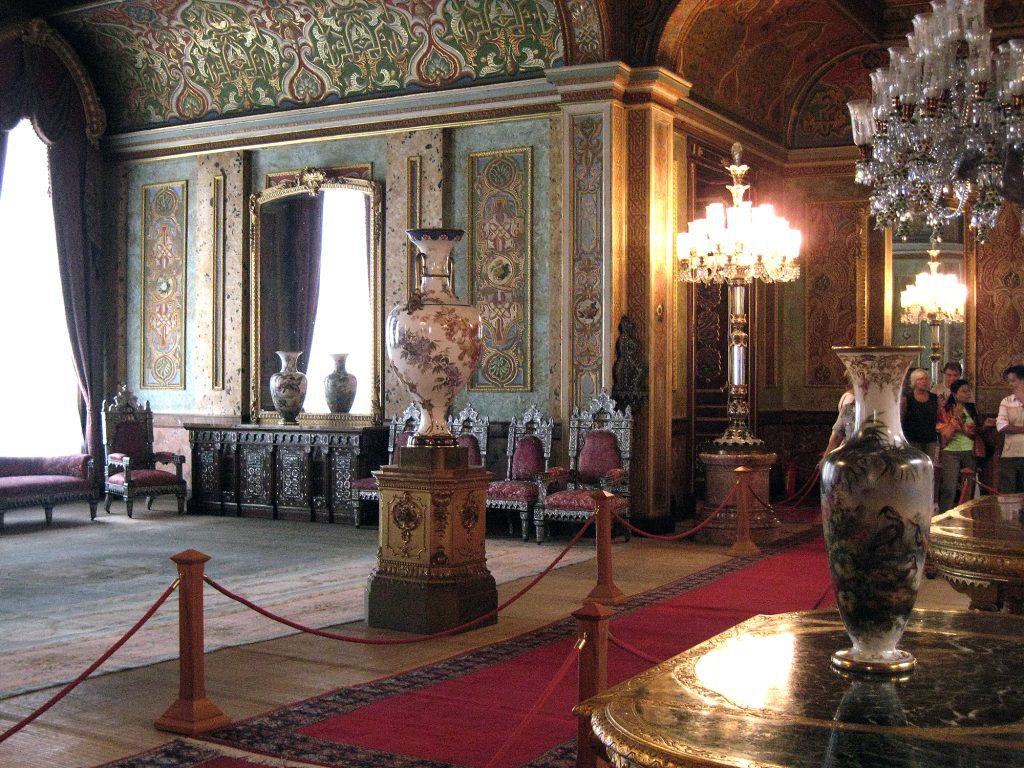 The interiors of Beylerbeyi Palace are richly decorated with luxurious materials.