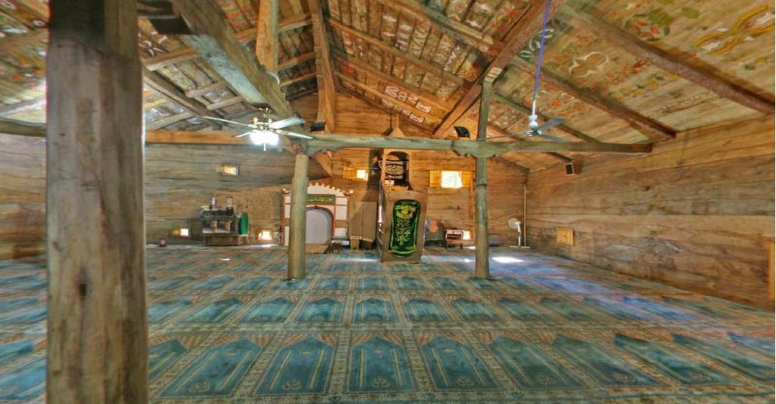 The mosque was constructed using chestnut wood, a material known for its durability and resistance to moisture. The nail-free assembly system relies on wooden joints fitted precisely together, demonstrating exceptional craftsmanship.