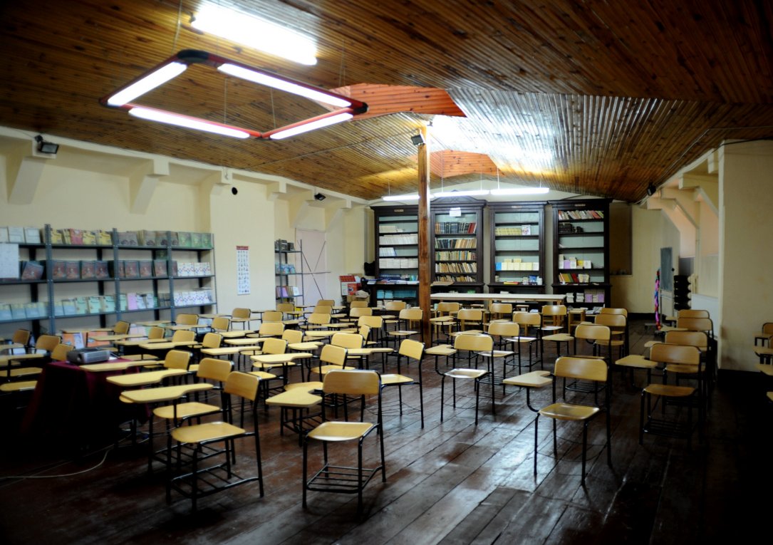The building is made of distinctive red bricks, which gave it the nickname “Red School”.