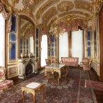 The pavilion is richly decorated and reflects the elegant taste of the Ottoman court during the 19th century.