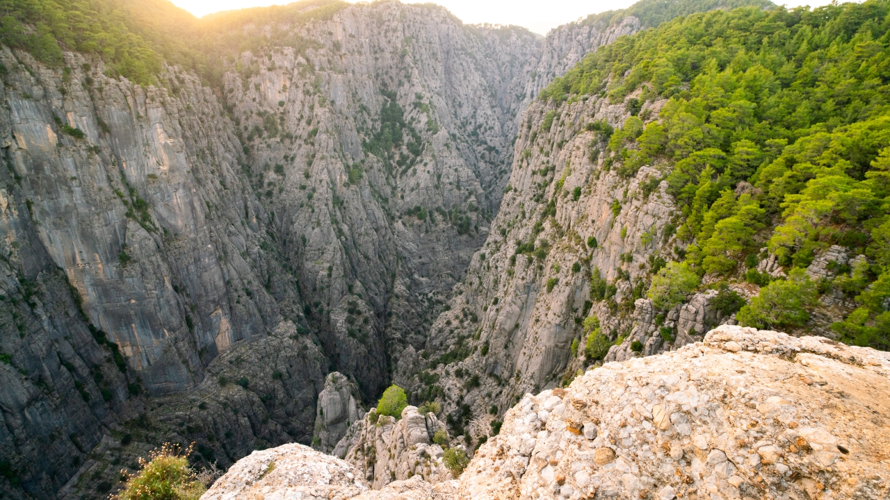 Tazı Canyon is not only a visual feast but also a site of spiritual and physical renewal. The canyon’s nickname—“Wisdom Valley”—comes from the overwhelming peace and introspection visitors often feel when they sit on its edge. Some describe the experience as meditative; others, as adrenaline-fueled. Either way, the views stretch endlessly across tree-covered ridges and rugged rock faces that glow golden at sunset.