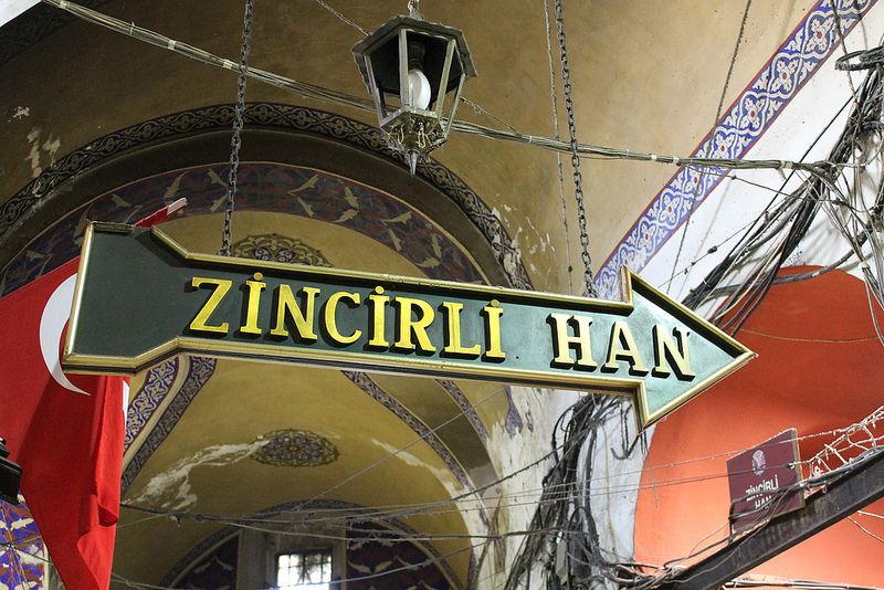 The han’s entrance is on Zincirli Han Sokak, marked by its arched stone doorway and hanging chain.